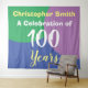 Celebre un cumpleaños con una pared colgante de tapiz personalizada que muestra el nombre del destinatario y el número de años. Fondo para fiestas para una persona de 100 años.
