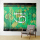 ¡Haz que el 19º aniversario de bodas de jade sea una celebración inolvidable con este tapiz conmemorativo! La elegante letra con confeti hexagonal dorado sobre un fondo verde jade moteado bordeado por barras negras añade un toque memorable para esta ocasión especial y aniversario. Personaliza con los nombres de la pareja, fechas de matrimonio y mensajes de felicitación.