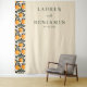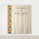 This wedding backdrop features a modern yet classic design with a vertical layout, divided into two sections. The left side showcases a vibrant pattern of orange fruits and green leaves, creating a lively border, while the right side offers a clean beige background for elegant text placement. Customizable names and dates can be added in sophisticated serif and sans-serif fonts, enhancing its personal touch. The cheerful color palette of beige, bright orange, and dark green evokes themes of growth and celebration, making it perfect for a joyful wedding occasion.