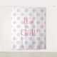 Tela de "Es una niña" para baby shower. Esta tela femenina se verá muy dulce como fondo en tu baby shower.