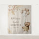 Tela tejida para shower de bebé de oso bohemio con fondo marrón claro, un oso de bebé vintage pintado con acuarela, globos, hierba de pampas rústica boho y flores, más una plantilla de texto moderna fácil de personalizar.