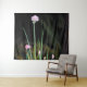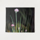 La imagen suavemente dramática de este Tapiz de pared es una fotografía original de ZoeSPEAK de una planta de cebollas floridas. Cada flor de lavanda pálida se sienta sobre su tallo tubular verde azulado. El fondo oscuro y nocturno de la foto muestra la belleza de esta deliciosa hierba.