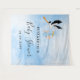 Para una elegante fiesta de bebé en celebración de un niño. Un cielo azul y blanco como fondo. Con una linda cigüeña volando sosteniendo un bebé niño. Personalice y agregue el nombre de la futura mamá. El texto Baby Shower está escrito con un estilo de letra manuscrita moderno y trendy. Letras negras. ¡Simple, minimalista y elegante! Se puede utilizar como pancarta de bienvenida, decoración de pared de fiesta o como fondo para cabina de fotos.
