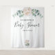 Elegante, clásico, moderno banner de estilo floral para chupinada de bebé, tapiz. Decorado con peonías pintadas con acuarela blanca, flores y vegetación de eucalipto. Con el texto: Chupinada de bebé escrito con un estilo de letra manuscrita negra moderna y grande. Personaliza y agrega el nombre de la futura madre y una fecha. Se puede utilizar como banner de bienvenida, decoración de pared para la chupinada de bebé o como telón de fondo para fotos. Neutral en cuanto al género.