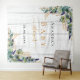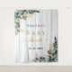Un fondo rústico de madera blanca. Decorado con hojas de eucalipto pintadas con acuarela verde, ramitas, follaje y hojas doradas falsas. Personaliza y añade el nombre de la futura mamá y una fecha. Letras negras y doradas. Se puede utilizar como pancarta de bienvenida para baby shower, como decoración de pared para la fiesta o como fondo para cabina de fotos.