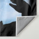 Un dinosaurio allosauro mira hacia un cielo azul brillante como un pterosaurio sobrevolando. Este diseño se puede personalizar añadiendo tu propio texto o imágenes personales.
