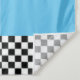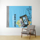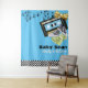Personaliza un Baby Shower de Hip Hop retro de los 80/90 para un NIÑO con una cinta de casete azul con etiqueta personalizable; zapatos de cuna con patrón de cuadros negros y blancos y corbata de lazo dorada; una pila de billetes de cien dólares y notas musicales que vuelan. el color de fondo se puede cambiar si se desea.