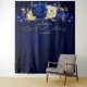 Elegante telón de fondo fotográfico de ducha de boda con tema azul real dorado / accesorio de cabina de fotos con elegante ramo de flores de rosa de color azul real, azul marino, dorado, amarillo y brotes y hojas de eucalipto. Por favor, contácteme para cualquier ayuda en personalización o si necesita cualquier otro producto con este diseño.