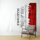 Cartel de bienvenida de boda festivo, decorativo y colorido y telón de fondo para pared de fotos, diseñado para una pareja apasionada que ama las rosas rojas apasionadas, brillantes y audaces como su amor mutuo. La fuente de escritura tradicional y romántica combinada con una tipografía serif más simple la mantiene tradicional y elegante. Todo el texto es personalizable para que elijas tu mensaje de bienvenida personalizado para tus invitados. También puedes cambiar la fuente por una diferente que se adapte al estilo y decoración de tu boda.