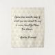 Agradable tapiz con una sabia cita: "Abre la boca sólo si lo que estás a punto de decir es más hermoso que el silencio". Atribuido a un antiguo proverbio árabe. El tapiz tiene un fondo hexágono de color beige claro para añadir profundidad e interés al diseño.