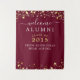 Crea una reunión de clase o todo el cartel de bienvenida escolar, decoración fiesta o fondo de foto-op con el título BIENVENIDOS ALUMNI en una tipografía moderna de escritura manuscrita, año de clase editable y nombre de tu escuela, universidad u otro texto personalizado acentuado con estrellas de oro contra un fondo editable de color burdeos que puedes cambiar al color de tu escuela. Diseñado para ser reutilizable para futuras reuniones. CAMBIOS: cambie el color de fondo o cualquier estilo de fuente de texto, tamaño, color, espaciado y ubicación en EDIT. OPCIONES DE TAPESTRÍA: El ejemplo se muestra en el tamaño de 50x60"; hay otros tamaños disponibles en la página de pedidos. ASISTENCIA: Para obtener ayuda con la modificación/personalización del diseño, el cambio de color, el redimensionamiento, la transferencia del diseño a otro producto o si desea coordinar elementos, póngase en contacto con el diseñador ANTES DE PEDIRLO a través de Zazzle Chat o makeitaboutyoustore@gmail.com.