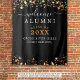 Crea un cartel de bienvenida de clase negra y naranja, decoración fiesta o fondo de foto-op con el título BIENVENIDOS ALUMNI en una moderna y sofisticada tipografía de escritura, año de clase editable y nombre de tu escuela, universidad o universidad u otro texto personalizado acentuado con estrellas de oro. Diseñado para ser reutilizable para futuras reuniones. OPCIONES DE TAPESTRÍA: El ejemplo se muestra en el tamaño de 68x80" (otros tamaños están disponibles en la página de pedidos). ASISTENCIA: Para obtener ayuda con la modificación/personalización del diseño, el cambio de color, el redimensionamiento, la transferencia del diseño a otro producto o si desea coordinar elementos, póngase en contacto con el diseñador ANTES DE PEDIRLO a través de Zazzle Chat o makeitaboutyoustore@gmail.com.