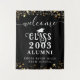 Bienvenido a los alumnos a su reunión de clase de secundaria o universitaria (editable para cualquier reunión de año) con este tapiz de color personalizado para ser usado como un fondo de foto o cartel con estrellas de oro, luces de cuerda, guión de caligrafía y tipografía decorativa y personalizado con el nombre de tu escuela y año de curso de graduación. Los colores (mostrados en negro, dorado y blanco) se pueden cambiar a los colores de la escuela o coordinar los colores del tema fiesta en EDIT. OPCIONES DE TAPESTRÍA: El ejemplo se muestra en el tamaño de 50x60"; hay otros tamaños disponibles en la página de pedidos. ASISTENCIA: Para obtener ayuda con la modificación o personalización del diseño, el cambio de color, el cambio de tamaño o la transferencia del diseño a otro producto, póngase en contacto con el diseñador ANTES DE PEDERLO a través de la pestaña del MENSAJE de chat de Zazzle que aparece a continuación o envíe un correo electrónico a makeitaboutyoustore@gmail.com.