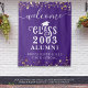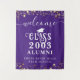 Bienvenido a los alumnos a su reunión de clase de secundaria o universitaria (editable para cualquier reunión de año) con este tapiz de color personalizado para ser usado como un fondo de foto o cartel con estrellas de oro, luces de cuerda, guión de caligrafía y tipografía decorativa y personalizado con el nombre de tu escuela y año de curso de graduación. Los colores (que se muestran en color púrpura, dorado y blanco) se pueden cambiar a los colores de la escuela o coordinar los colores del tema fiesta en EDIT. OPCIONES DE TAPESTRÍA: El ejemplo se muestra en el tamaño de 50x60"; hay otros tamaños disponibles en la página de pedidos. ASISTENCIA: Para obtener ayuda con la modificación o personalización del diseño, el cambio de color, el cambio de tamaño o la transferencia del diseño a otro producto, póngase en contacto con el diseñador ANTES DE PEDERLO a través de la pestaña del MENSAJE de chat de Zazzle que aparece a continuación o envíe un correo electrónico a makeitaboutyoustore@gmail.com.