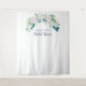 El clásico fondo de fotos de flores blancas para despedida de soltera es perfecto para una celebración de boda en primavera. El elegante diseño floral presenta suaves rosas y flores blancas, peonías y crisantemos con toques de flores de acuarela azul pervinca y follaje verde. Personalízalo con el nombre de la futura novia.