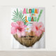 Tapiz de pared para fondo de fotos de fiesta de parejas con tema de luau hawaiano o ducha de novia con un cóctel de coco tropical de acuarela con flores de hibisco rosadas, hoja de palma y una leyenda que dice "¡Aloha! Let's Luau" en colores vibrantes y veraniegos. El texto se puede personalizar, así que ya sea que tengas una ducha de parejas inspirada en la isla o una ducha de novia con tema de playa, este divertido y festivo decorado de pared agregará un toque de paraíso tropical a tu celebración. Arte de KL Stock