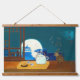 Una cosecha de tradición china de oración y reunión familiar celebrada por la noche cuando la deslumbrante luna llena es brillante en la temporada de otoño. El diseño muestra el paisaje antiguo del palacio real de China, la torta de luna, el té, la tetera de jade asiática sobre la mesa y el follaje.