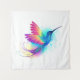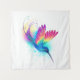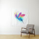 Colibrí luminoso, irrisorio, exótico volador sobre fondo blanco, pintado con pintura multicolor, acuarela. Colibrí arcoiris.