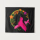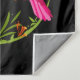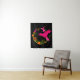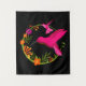 Hermosos colibríes tropicales y tapices de flores en las paredes. Pájaros de colibrí rosa brillante alimentándose de flores exóticas, sobre un fondo negro.