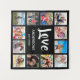 Crea tu propio collage de fotos personalizado de 12 fotos, símbolo de tapicería con tus imágenes personalizados en un sencillo fondo negro moderno. La cara del letrero del tapiz también incluye el nombre de su familia, el año establecido y un guión escrito a mano de "Amor". Añade tus fotos, diseños o obras de arte favoritas para crear algo realmente único.
