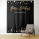 Configure una estación de selfies fotográficos que sirva como letrero de bienvenida en su próxima fiesta corporativa de Navidad. Letra de "Felices Fiestas" en oro para coincidir con las invitaciones de esta colección. Puntos de confeti blancos y dorados en un elegante fondo negro.