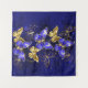 Composición de lujosas mariposas de zafiro y joyas de oro sobre fondo de textura azul.
