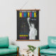 Poster de viajes vintage por volar Northwest Airlines a Nueva York, mostrando la Estatua de la Libertad y el estilizado horizonte de la ciudad de Nueva York.