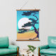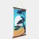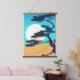 Tapiz colgante en una silueta de un ciprés inspirada en Japón, enmarcada en una luna llena, contra un cielo de naranja de coral y agua