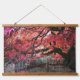 Tapiz Con Marco De Madera Arce japonés rojo brillante y cerca de bambú