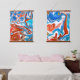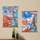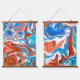 Tapiz Con Marco De Madera Arte de fluidos de mármol rojo, blanco y azul