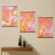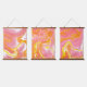 Tapiz Con Marco De Madera Arte de fluidos de mármol rosa, Naranja y blanco