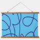 Tapiz Con Marco De Madera Arte de línea contemporánea en azul