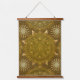Mezcla de elementos de mandala hindú y budista con un toque contemporáneo, este tapiz dorado tiene un oso rodeado de flores, impreso en poliéster suave con un marco rústico de madera para una armoniosa decoración natural.