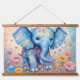 Tapiz Con Marco De Madera Bebé elefante lindo en un jardín pastel