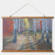Un viejo camino de tierra está rodeado de altos árboles de abedul con llamativos baúles blancos y una vibrante follaje otoñal. Las hojas caídas crean una colorida alfombra en el suelo, lo que realza el ambiente cálido de la escena. Esta es una pintura al óleo original de 16" X 20", en lona estirada.