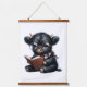 Tapiz Con Marco De Madera Black Highland Cow Reading A Book