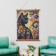 Tapiz Con Marco De Madera Black Whimsical Cat Resumen Arte de pintura floral