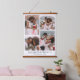 Elegante tapiz colgante para guardar el recuerdo de su día especial con un collage de 4 fotos y sus nombres y fecha boda en tipografía moderna.