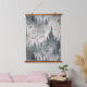 Este fantástico tapiz escénico cuenta con un castillo oscuro y altísimo con ventanas brillantes enclavado en un bosque de tonos azules y grises. Rodeado de verduras delgadas, árboles de ramas desnudas y flores suaves en rosa y naranja, el paisaje brilla con sutiles toques de luz mágica. El ambiente cretense y los detalles etéreos crean una atmósfera misteriosa y caprichosa, perfecta para los amantes de la fantasía, los cuentos de hadas y los ambientes del bosque de ensueño.