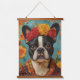 Tapiz Con Marco De Madera Bulldog francés como Frida Kahlo