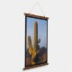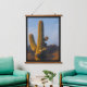 El tapiz de la pared muestra una foto de un cactus de saguaro iluminado por el sol contra cielos azules y una cordillera baja del desierto de Arizona. Fotografiado en el Cañón Sabino, Tucson, Arizona