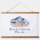 Sanibel Island FL es uno de los grandes lugares en los EE.UU. para la recolección de conchas marinas y este tapiz de pared es un homenaje a eso, con su color de agua, su collage de conchas de color rubor con tipo de letra tipo escritura a mano.