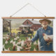 Tapiz Con Marco De Madera Chicken Farm Wood Topped Wall Tapestry