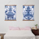 TAPIZ CON MARCO DE MADERA CHINOISERIE PAGODAS IN BLUE 1 & 2