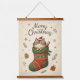 Tapiz Con Marco De Madera Christmas Cat in Stocking