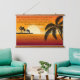 Tapiz Con Marco De Madera Cielo naranja con silueta de árbol de palmas