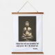 Una fotografía sepia captura una estatua serena de Buda sentada en una pose meditativa en un fondo oscuro. La estatua está tallada con detalles intrincados, incluyendo una expresión serena en la cara, túnicas y un discurso tradicional en la cabeza. La iluminación da sombra a la estatua, resaltando su forma y creando una sensación de tranquilidad.