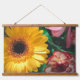 Tapiz Con Marco De Madera Claveles a rayas y gerbera