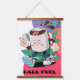 Un divertido y acogedor diseño otoñal con una linda taza de café caminando lanzando un signo de paz, rodeado de hojas de otoño caídas. Perfecto para los amantes del café y para los amantes de los placeres caóticos, el estilo estacional y la estética lúdica.