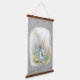 Tapiz Con Marco De Madera conejo de pascua con flores colgando tapiz